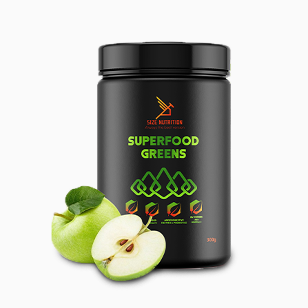 Descoperă SUPERFOOD GREENS de la Size Nutrition, un amestec premium de superalimente verzi, special creat pentru a susține sănătatea, imunitatea și nivelul de energie zilnic. Formula bogată în vitamine, minerale și antioxidanți îți oferă nutrienții esențiali din legume și plante verzi, pentru un boost natural, echilibrat și eficient.